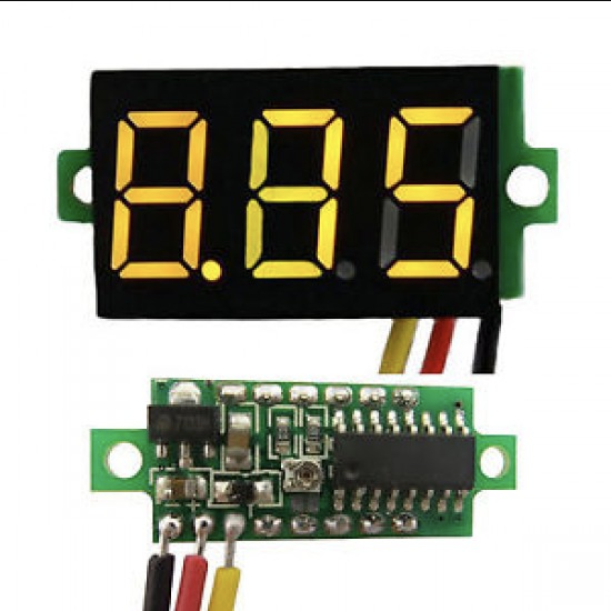 This is tiny and compact digital voltmeter with a yellow LED Display. The 0.28 inch 3-30V DC 3 Wire Yellow LED Display requires only a few minutes of configuration and is as simple as directly connecting wires to the source you want to measure and seeing the LED blink!!!!