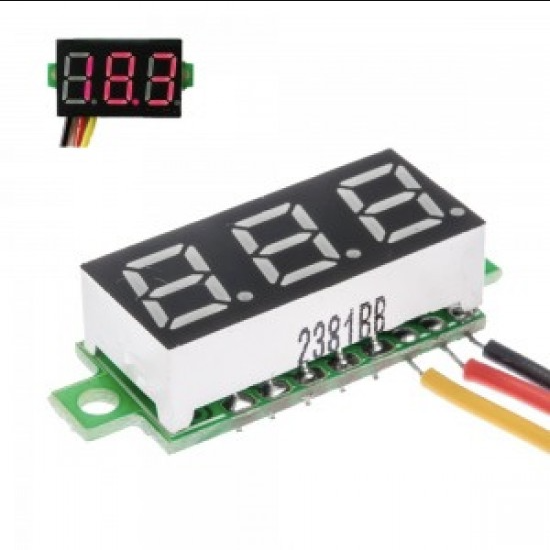 This is tiny and compact digital voltmeter with a red LED Display. The 0.28inch 0-100V DC three Wire Red LED Display requires only a few minutes of configuration and is as simple as directly connecting wires to the source you want to measure and seeing the LED blink!!!!