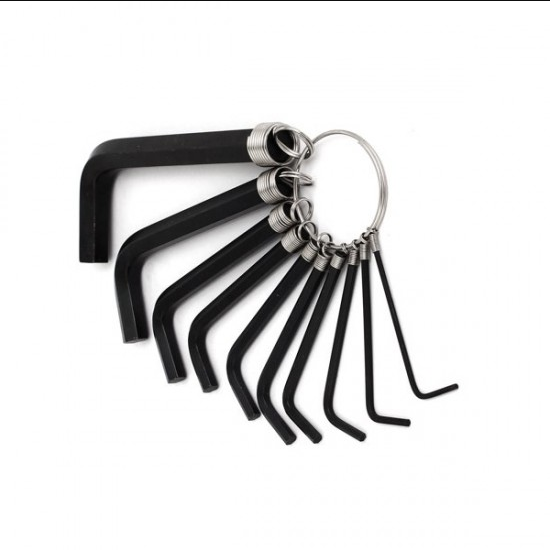 The 10 in 1 Metric Combination Hexagonal Key Allen Wrench set is made of high alloy steel for strength and lifelong durability. Each hex key is held in a type of key-ring holder to keep organized and to quickly find the correct size required. This come in 10 different sizes including 1.5mm 2mm 2.5mm 3mm 3.5mm 4mm 5mm 6mm 8mm 10mm.