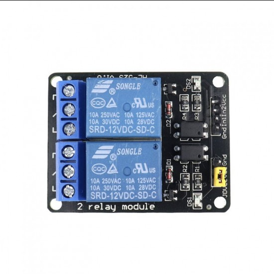 This 12V Dual Channel Relay Module meets the safety standard as control areas and load area have the isolation groove. Optical coupling isolation module.