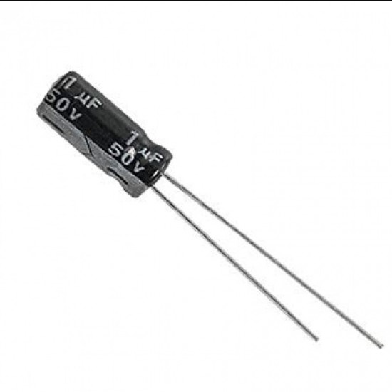1uF 50V Electrolytic Capacitor is a radial polarised good quality Electrolytic capacitor. Electrolytic capacitors are widely used in power supplies, switched-mode power supplies and DC-DC converters. This capacitor has long life, low leakage current and wide operating range.