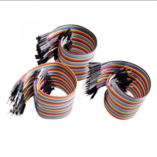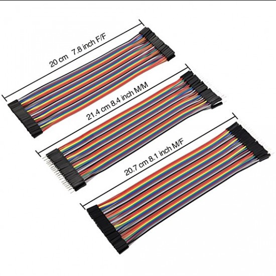This is the combo of 20CM Wire Color Jumper Cable, 2.54mm 1P-1P M-M, M-F, F-F 40PCS of wire in each strip of cable. It is very Flexible and easily detachable to no. of wires to your requirement. It is compatible with 2.54 mm mil spacing pin headers.