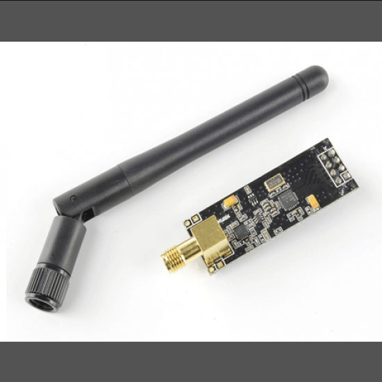 This board features a reverse polarized SMA connector for maximum RF range. And there is PA and LNA circuit on board, with the external antenna it can reach long distance than the one without these parts. This module comes with the 2.4G antenna (2DB), with 250Kbps transmission rate on open air it can reach the 800-1K meters communication distance.