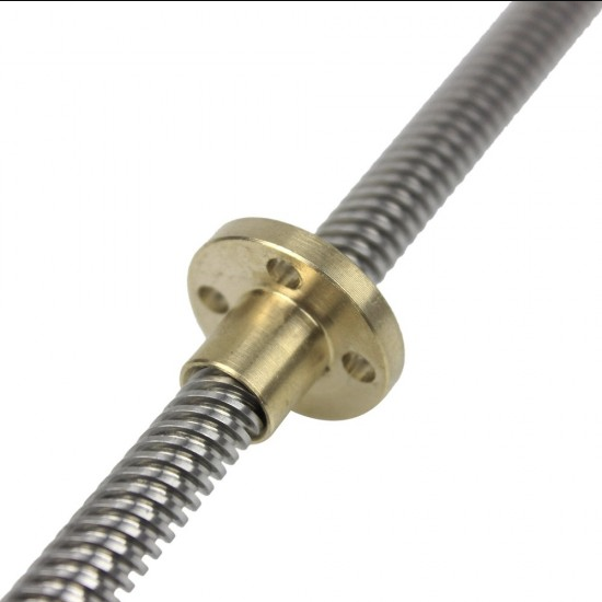 Lead Screw 300mm Length 8mm Thread with Copper Nut offer an excellent way to turn rotational motion into linear motion. The 2mm pitch offers a good trade-off between torque required to drive the screw and linear speed created. Each rotation of the lead screw will drive the mating nut precisely 8mm. The OD of our lead-screws is just under 8mm to ensure proper fitment in an 8mm ID bearing or clamp.