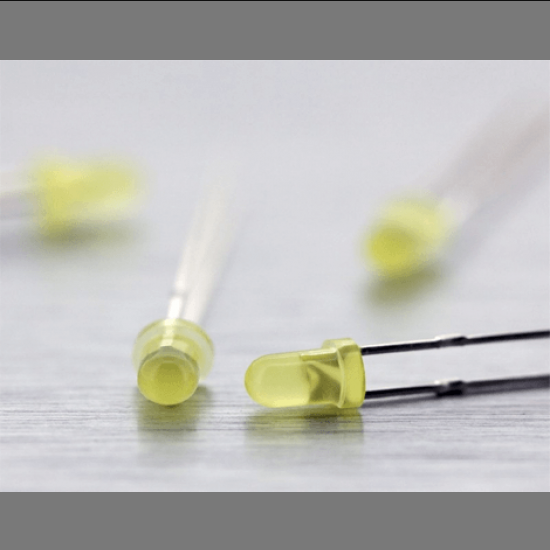 3mm Yellow LED Diffused is commonly used Yellow color LED, comes in diffused as well as clear 3 mm package.