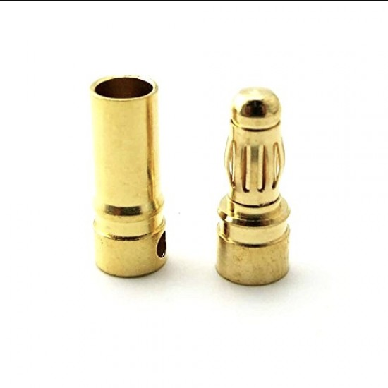 4mm Gold Connectors Male/Female Pair Gold Connectors has Quality 4 mm sprung gold connectors can handle the large current, perfect for 3500mAh or larger capacity batteries or 80A+ systems. Our gold connectors are well machined and gold plated with a rear side-cut for easy soldering.