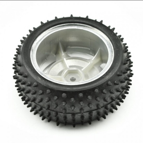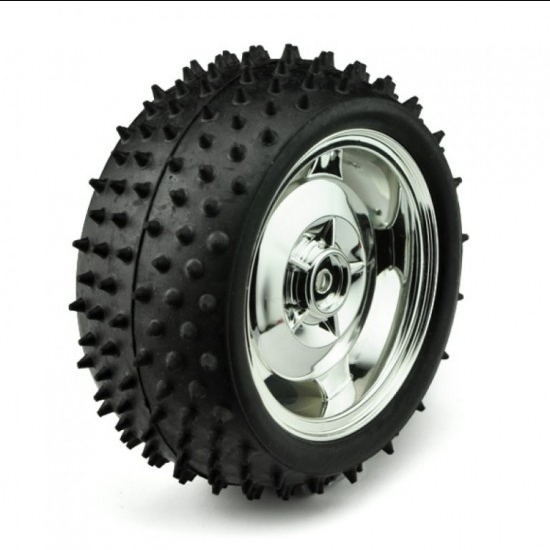 This Robot Smart Car Wheel, 38MM Width Surface Red/Pink At 85mm in diameter and 38mm wide, these are some seriously high-quality little wheels. The tire is soft black rubber with deep tread and spikes for added traction in rugged terrain. An axis adapter is needed which bolts to the back of the hub and mounts to a motor. this adapter can mount to our Micro DC Geared Motor with Back Shaft. We’re selling these wheels in pairs.