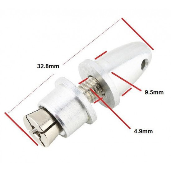 This A2212 Motor Prop Adapter (Collet Type) aluminum Prop Adapter fits 3mm shafts and has a 5.86mm diameter x 23.81mm length shank. High Quality 3.17mm Aluminium Bullet Propeller Adapter For Brushless Motor, Propeller Plane, Multi-copter, Quadcopter are a collet style that grip the motor shaft when tightened. Keeps the propeller straight and true on the motor shaft reducing vibration. Most props fit this adapter very well. The 3.17mm RC aluminum bullet propeller adapter holder can be used to mount on 4mm motor shaft of the brushless motor to capture propeller.