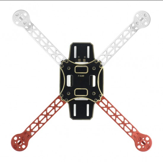 The F330 also features colored arms (2 white and 2 red) which are great for orientation. It helps to keep you flying the right direction without the need for different colored props.