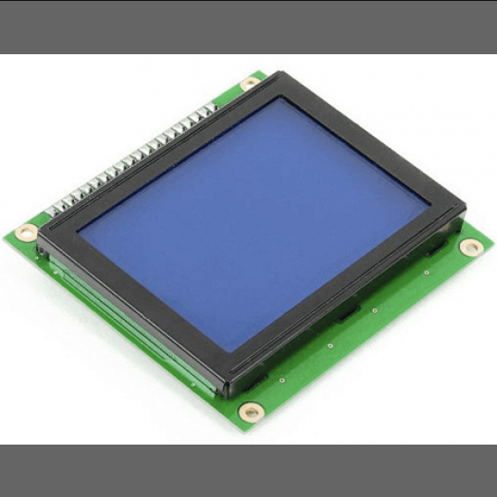The 12864B Graphic LCD module is a 128 x 64 pixel LCD display with a blue backlight and white foreground. The display is fully programmable and can display a combination of both graphics and text. It can operate in both parallel modes .