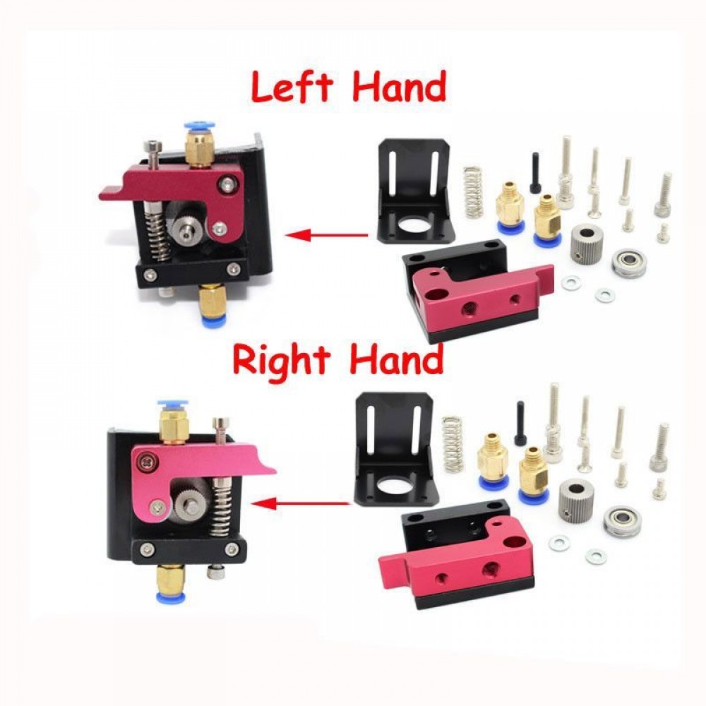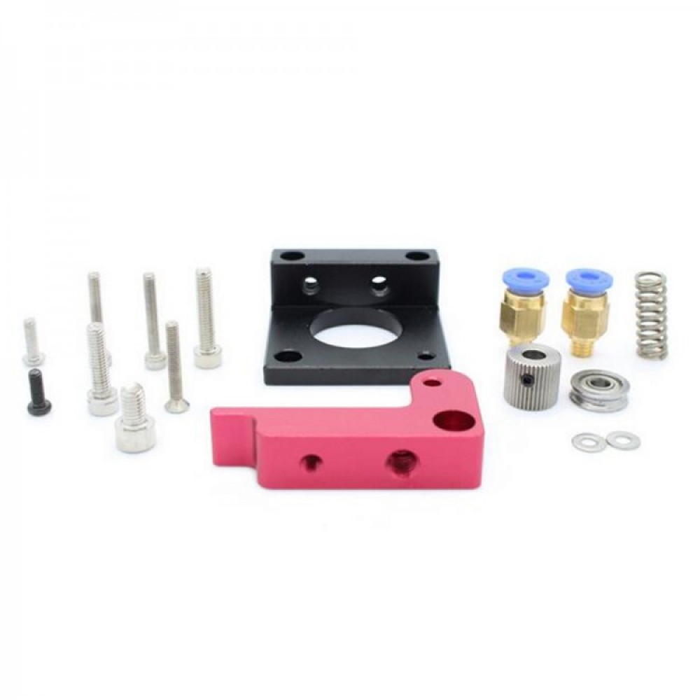 Package Includes: • 1 x Aluminum block built into frame • 1 x Aluminum lever/fulcrum • 1 x Idler wheel for 1.75mm filament • 1 x Extruder drive gear • 1 x High tension spring • Set of Screws as shown in product image • 1 x NEMA 17 L-Bracket