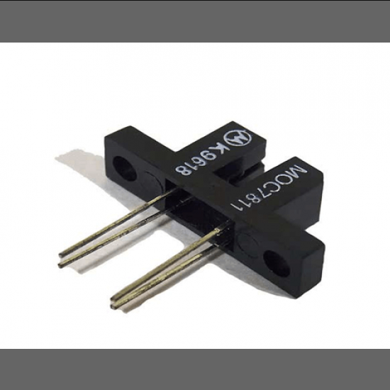 MOC-7811 IR Opto Isolated Slot Sensor is a slotted opto isolator module, with an IR transmitter and a photodiode mounted on it. Performs Non-Contact Object Sensing. This is normally used as positional sensor switch (limit switch) or as Position Encoder sensors used to find position of the wheel. It consists of IR LED and Photodiode mounted facing each other enclosed in plastic body.