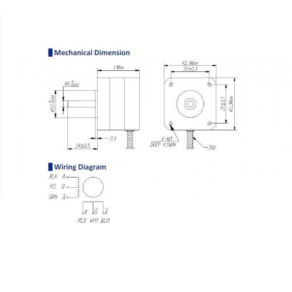 - 1 x NEMA17 1.6kgcm 6 wire Unipolar Stepper Motor