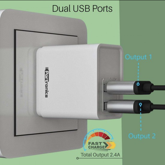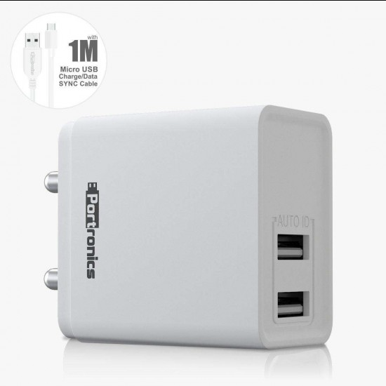 Portronics Adapto 648 POR-648, 2.4A Quick Charging Dual USB Port with 1M Micro-USB Charging Cable (White)