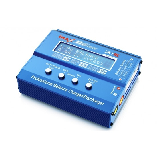 SkyRC B6 mini charger is a high-performance, micro-processor controlled charge/discharge station with battery management suitable for use with all current battery types, with integral equalizer for six-cell Lithium- Polymer (LiPo), Lithium High Volage(LiHV),Lithium-Ferrum (LiFe) and Lithium-Ion (LiIon) batteries; maximum 6A charge current and 60W charge power.