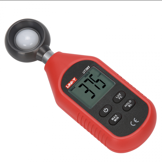 Uni-T UT383 Digital Mini Light Meter is a mini light meter equipped with photoelectric sensing technology, which can effectively represent light intensity with electrical signals, then processes data and displays the result on LCD. UT383 can effectively measure light intensity and display results in units of Lux or FC on screen. It is light weight, compact, ergonomic, and user friendly, making it a great tool for monitoring light intensity in homes, offices, schools, laboratories, indoor farming, hospitals, and other areas.